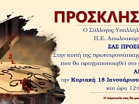 Στην κοπή της πρωτοχρονιάτικης πίτας του προσκαλεί ο Σύλλογος Υπαλλήλων Π.Ε. Αιτωλοακαρνανίας. Θα πραγματοποιηθεί την Κυριακή 18 Ιανουαρίου και ώρα 12:00 μ.μ. στο κέντρο AMARO στο Αγρίνιο. agrinionews.gr