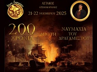 Εκδήλωση στον Αστακό Ξηρομέρου απο τα "200 XPONIA ΑΠΟ ΤΗ NAYMAXIA TOY ΔΡΑΓΑΜΕΣΤΟΥ" Παρασκευή 21 - Σάββατο 22 Νεμβρίου 2025 Παρασκευή 21 Νοεμβρίου 2025 - Πνευματικό Κέντρο Αστακού 17:30 Χαιρετισμοί «Ξενάγηση » στη άυλη πολιτιστική κληρονομιά . Παραδοσιακές ενδυμασίες από το Κέντρο Διαπολιτισμικής…