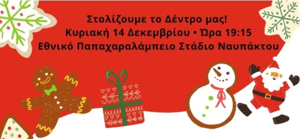 Μια ξεχωριστή γιορτινή βραδιά περιμένει μικρούς και μεγάλους την Κυριακή 14 Δεκεμβρίου στις 19:15, στο Εθνικό Παπαχαραλάμπειο Στάδιο Ναυπάκτου, όπου θα πραγματοποιηθεί το καθιερωμένο στόλισμα του χριστουγεννιάτικου δέντρου.
