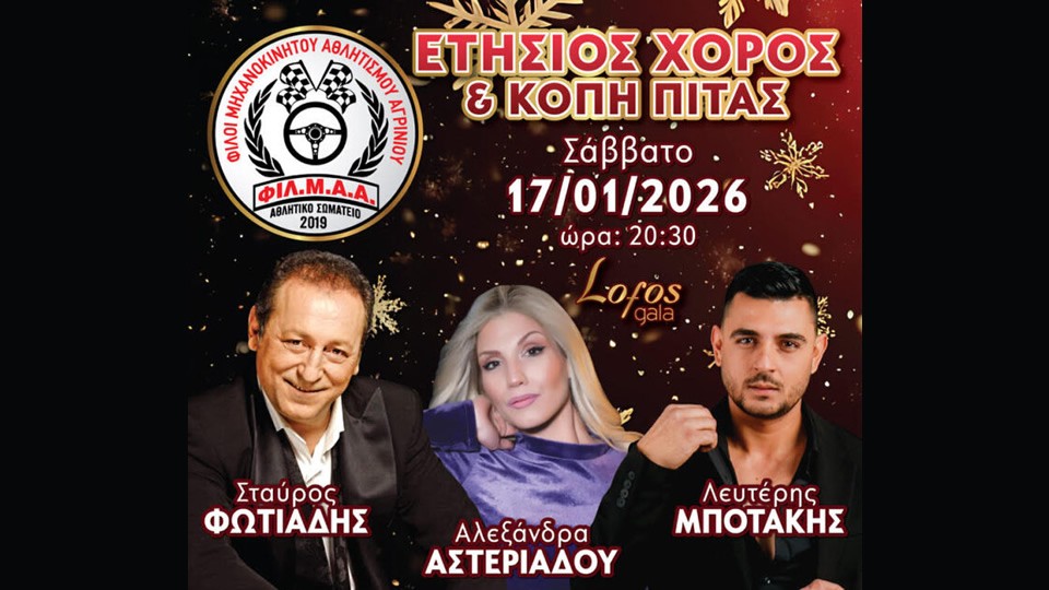 Οι Φίλοι Μηχανοκίνητου Αθλητισμού Αγρινίου (ΦΙΛΜΑ) καλούν στον ετήσιο χορό και στην κοπή πίτας στο Αγρίνιο.