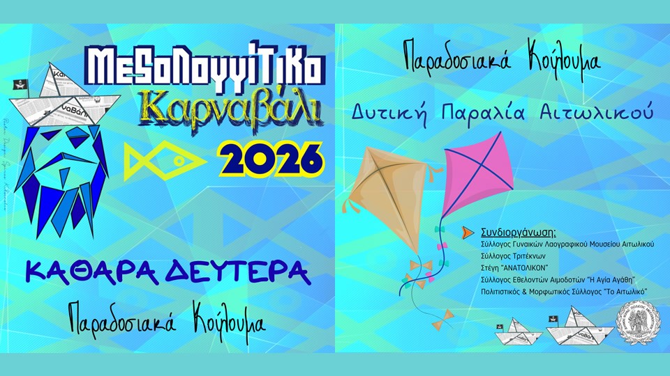Στο πλαίσιο των αποκριάτικων εκδηλώσεων, διοργανώνεται και φέτος η γιορτή της Καθαράς Δευτέρας, στη Δυτική Παραλία Αιτωλικού, με τα καθιερωμένα παραδοσιακά Κούλουμα.