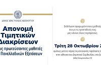 Σας προσκαλούμε να τιμήσετε με την παρουσία σας την εκδήλωση απονομής τιμητικών διακρίσεων στους πρωτεύσαντες μαθητές των Πανελλαδικών Εξετάσεων, η οποία θα πραγματοποιηθεί την Τρίτη, 28 Οκτωβρίου 2025, αμέσως μετά το πέρας της επετειακής παρέλασης (περίπου 12:00 μ.μ.). Η εκδήλωση θα λάβει χώρα…