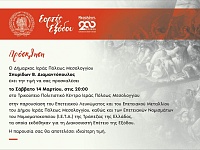 Η Διεθνής Αδελφότητα Απογόνων των Ελεύθερων Πολιορκημένων σας προσκαλεί το Σάββατο 28 Μαρτίου 2026 και ώρα 7:00 μμ στην 16η Ετήσια Συνάντηση Απογόνων των Ελεύθερων Πολιορκημένων η οποία θα πραγματοποιηθεί στο Τρικούπειο Πολιτιστικό κέντρο της Ιεράς πόλεως Μεσολογγίου. Ομιλητής Ιωάννης Μάζης…