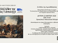 Ο Σύλλογος Φίλων Βαλβείου Βιβλιοθήκης Μεσολογγίου προσκαλεί στον 8ο Μαραθώνιο Ανάγνωσης για το Μεσολόγγι: «Τα πλείω οφέλη, τοις πλείοσι» την Παρασκευή 27 Μαρτίου 2026, 8.30 μ.μ. στο Μουσείο Ιστορίας & Τέχνης – Πινακοθήκη, Πλατεία Μπότσαρη. Λίγα λόγια για την εκδήλωση: «Μπαίνουμε στο…