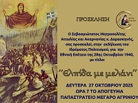 Η Ιερά Μητρόπολη Αιτωλίας και Ακαρνανίας και το Ίδρυμα Πολιτισμού “Άγιος Ευγένιος ο Αιτωλός” τιμώντας την ένδοξη εποποιία του 1940, διοργανώνουν επετειακή εκδήλωση με τίτλο: «Ελπίδα με μελάνι». Η…