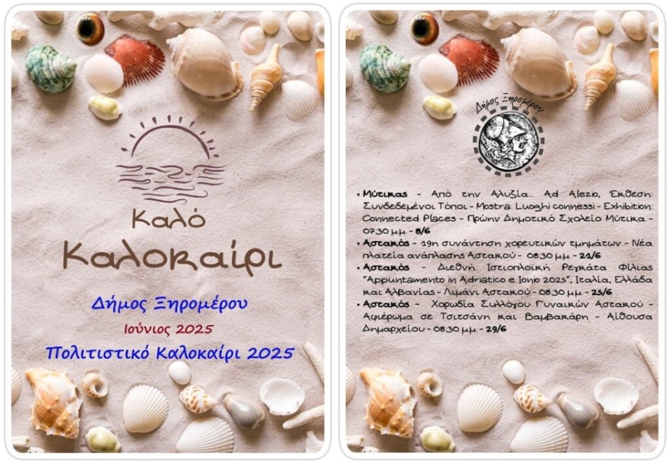 O Δήμος Ξηρομέρου, με ανακοίνωση, ενημερώνει για τις εκδηλώσεις του Ιουνίου στο πλαίσιο του «Πολιτιστικού Καλοκαιριού 2025».