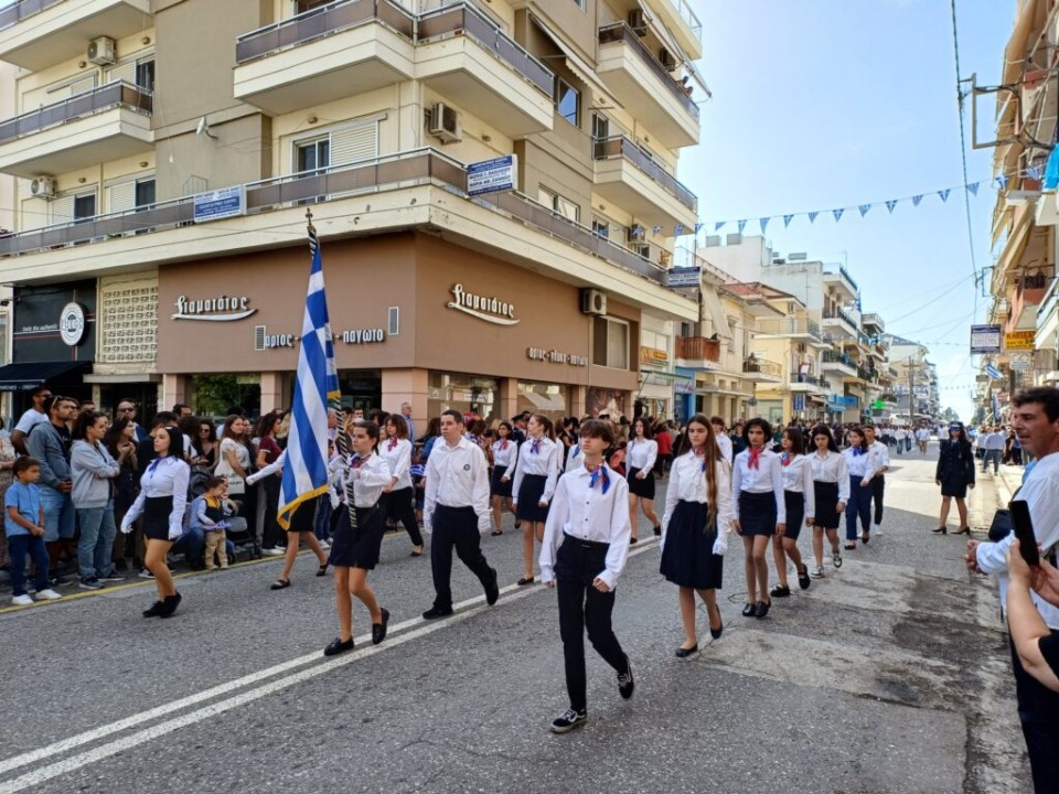 Μεσολογγίου, Αναπήρων και Θυμάτων Πολέμου, μαθητών και μαθητριών των Δημοτικών Σχολείων, Γυμνασίων και Λυκείων, Προσκόπων, Οδηγών και Τμήματος Ε.Ε.Σ. (τμήματος Μεσολογγίου), Πυροσβεστικής, Αστυνομίας και του Στρατού, παρουσία του Υφυπουργού Εργασίας και Κοινωνικής Ασφάλισης Κωνσταντίνου Καραγκούνη.