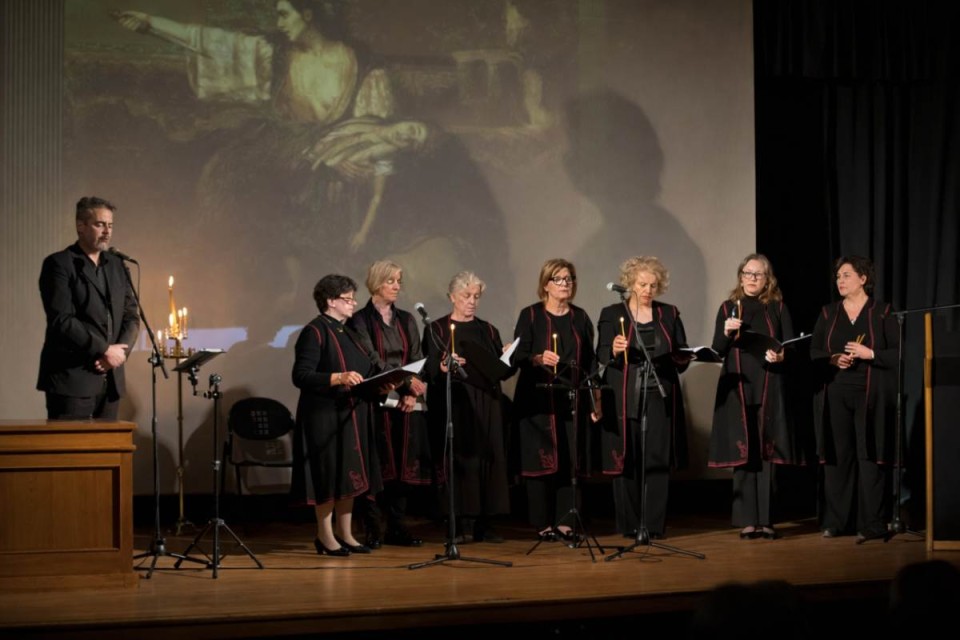 Στιγμιότυπο από την περσινή παρουσίαση του αφιερώματος «Θαυμάζω τες γυναίκες μας και στ’ όνομά τους μνέω», που πραγματοποιήθηκε στην Αίθουσα «ΔΗΜ. ΧΑΤΖΗΣ» στα Ιωάννινα, τον Απρίλιο του 2025.