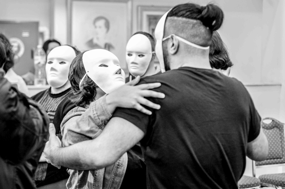 στην έναρξη της παράστασης απαγγέλει η ΜΥΡΤΩ ΜΕΤΣΙΝΗ