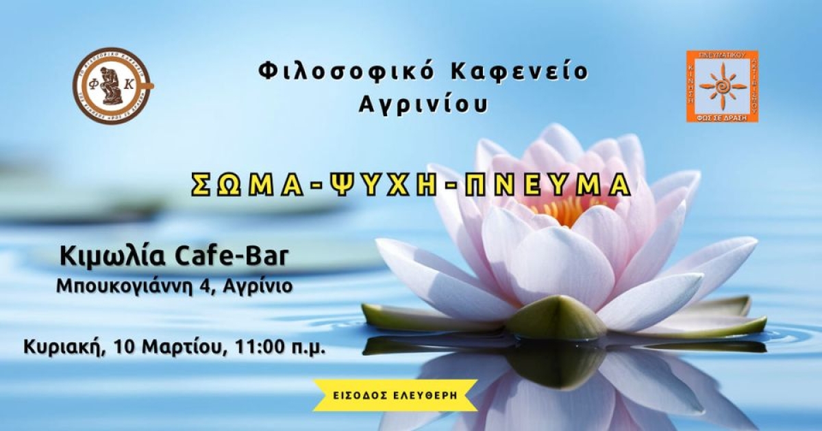 Στη 3η συνάντηση του ΦΙΛΟΣΟΦΙΚΟΥ ΚΑΦΕΝΕΙΟΥ ΑΓΡΙΝΙΟΥ ΤΗΣ ΚΙΝΗΣΗΣ "ΦΩΣ ΣΕ ΔΡΑΣΗ" για το έτος 2024 θα συζητήσουμε για την εναρμόνιση σώματος -ψυχής-πνεύματος.