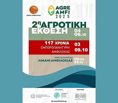 2η Αγροτική Έκθεση Αμφιλοχίας – AGRE AMFI 4 - 6 Οκτωβρίου 2025 | Εμπορικός Λιμένας Αμφιλοχίας Η AGRE AMFI επιστρέφει δυναμικά! Η 2η Αγροτική Έκθεση Αμφιλοχίας θα πραγματοποιηθεί από τις 4 έως τις 6 Οκτωβρίου 2025 στον εμπορικό λιμένα Αμφιλοχίας, και αναμένεται να αποτελέσει ξανά έναν σημαντικό…