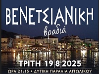 Το Αιτωλικό φοράει τα γιορτινά του και μας ταξιδεύει σε μια ξεχωριστή καλοκαιρινή εμπειρία με την Βενετσιάνικη Βραδιά 2025 Η εκδήλωση πραγματοποιείται την Τρίτη 19 Αυγούστου 2025, ώρα: 21:15 στην Δυτική Παραλία του Αιτωλικού. Με φόντο τη λιμνοθάλασσα και τη ναυτική παράδοση του τόπου, η…