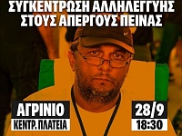 Και στο Αγρίνιο θα λάβει χώρα συγκέντρωση αλληλεγγύης στον απεργό πείνας Πάνο Ρούτσι, τον πατέρα του 22χρονου Ντένις που σκοτώθηκε στο σιδηροδρομικό δυστύχημα των Τεμπών. Ο Ρούτσι συνεχίζει για 7η μέρα σήμερα την απεργία πείνας, ζητώντας την εκταφή του γιου του προκειμένου να φωτιστούν οι συνθήκες… περισσότερα...