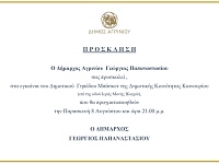 Π Ρ Ο Σ Κ Λ Η Σ Η Ο Δήμαρχος Αγρινίου Γεώργιος Παπαναστασίου σας προσκαλεί , στα εγκαίνια του Δημοτικού Γηπέδου Μπάσκετ της Δημοτικής Κοινότητας Καινουρίου (επί της οδού Ιεράς Μονής Βλοχού), που θα πραγματοποιηθούν την Παρασκευή 8 Αυγούστου και ώρα 21.00 μ.μ. Ο ΔΗΜΑΡΧΟΣ ΓΕΩΡΓΙΟΣ ΠΑΠΑΝΑΣΤΑΣΙΟΥ περισσότερα...