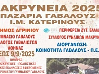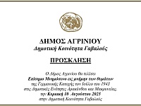 ΔΗΜΟΣ ΑΓΡΙΝΙΟΥ Δημοτική Κοινότητα Γαβαλούς ΠΡΟΣΚΛΗΣΗ Ο Δήμος Αγρινίου θα τελέσει Επίσημο Μνημόσυνο εις μνήμην των θυμάτων της Γερμανικής Κατοχής τον Ιούλιο του 1943 στις Δημοτικές Ενότητες Αρακύνθου και Μακρυνείας, την Κυριακή 10 Αυγούστου 2025 στην Δημοτική Κοινότητα Γαβαλούς Το πρόγραμμα έχει ως… περισσότερα...