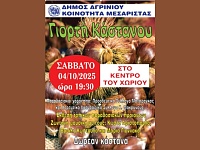 Η Μεσάριστα ετοιμάζεται να φορέσει τα φθινοπωρινά της και να υποδεχθεί ντόπιους και επισκέπτες στη φετινή «Γιορτή Κάστανου», που θα πραγματοποιηθεί το Σάββατο 4 Οκτωβρίου 2025, στις 7:30 το απόγευμα, στο κέντρο του χωριού. Η εκδήλωση υπόσχεται μια ζεστή βραδιά με ζωντανή μουσική, μπόλικο κέφι και… περισσότερα...