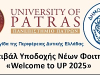 Welcome to Up Fest στην Ιερή Πόλη Μεσολογγίου Φεστιβάλ Υποδοχής Πρωτοετών Φοιτητών στις 8 Οκτωβρίου Ο Δήμος Ιερής Πόλης Μεσολογγίου, σε συνεργασία με το Πανεπιστήμιο Πατρών, υποδέχονται τους νέους φοιτητές της ακαδημαϊκής χρονιάς 2025-2026 που θα φοιτήσουν στις Πανεπιστημιακές Σχολές της πόλης, με… περισσότερα...